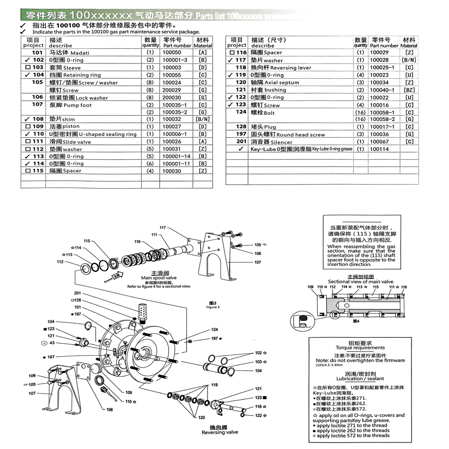 1.拆卸气动隔膜泵之前,将左右边的气室及液室分别标上记号以助于后续的再组装动作。
